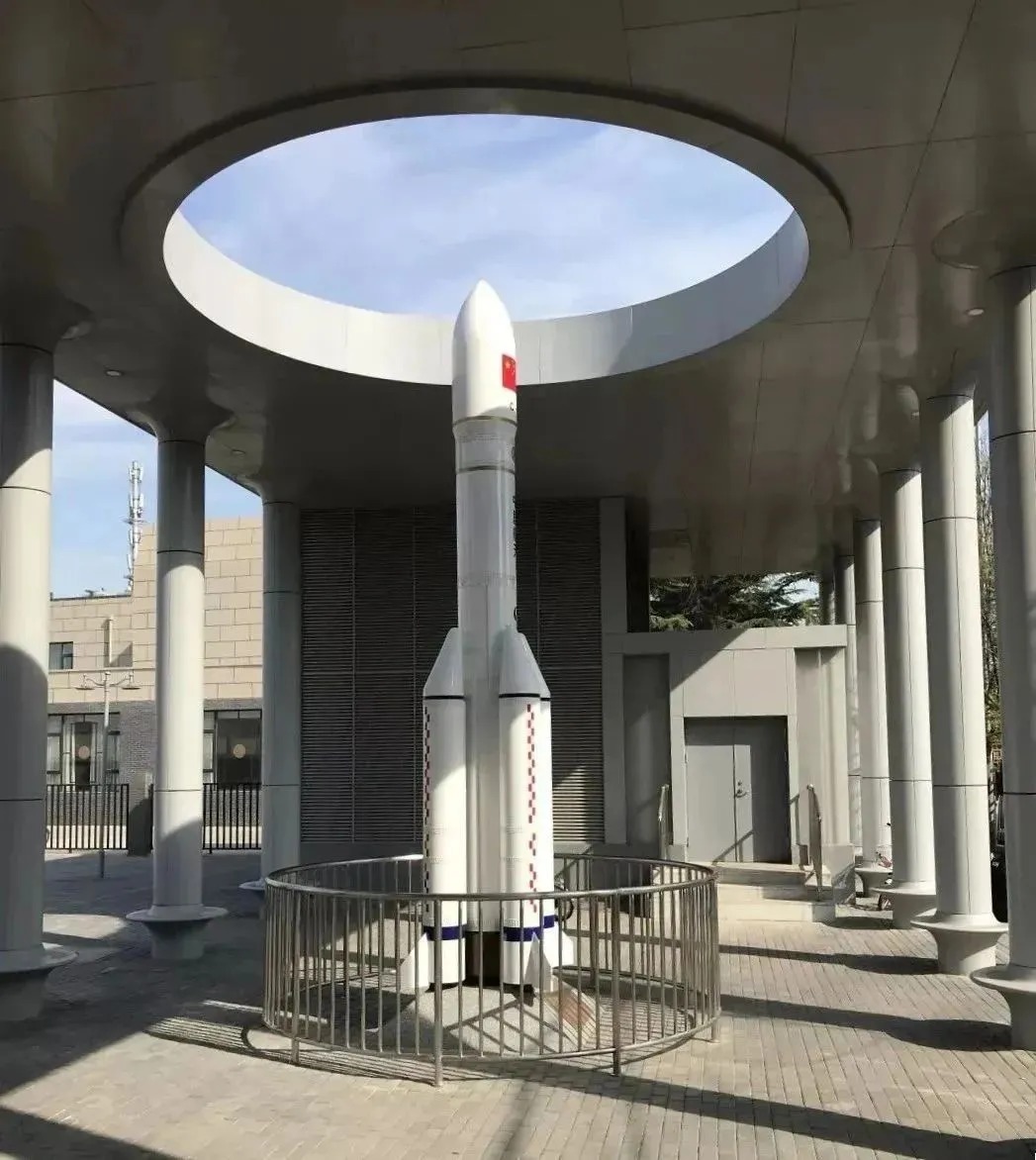 地面出入口B1口和C口矗立着长征五号和长征八号运载火箭的1:10模型,探入圆环天空的火箭头部,几乎被附近的航天人每天看到,承载着一代代人的梦想跃升太空。