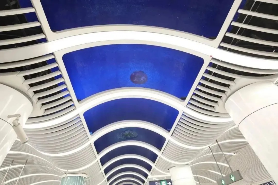 站厅穹顶用马赛克镶嵌艺术展现太阳系八大行星,表现人类对茫茫宇宙的向往以及未知世界的探索。