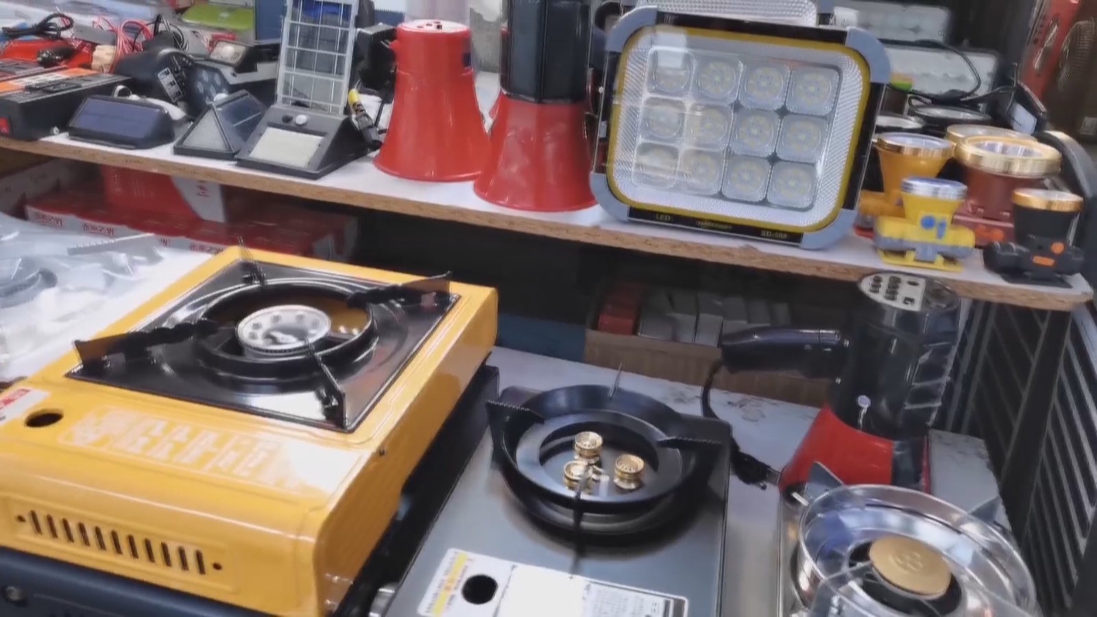 成都五块石电器市场里,入驻了众多售卖各类电器的商家,而在他们中间,销售卡式炉的商家也不少。在这些摊位前,摆放的卡式炉款式、大小不一,也对应不同的价格。并且,每一家均配套销售用于卡式炉燃料的丁烷气罐。