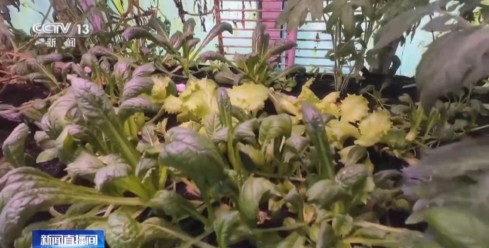 总台央视记者 王善涛:在中山站综合楼与越冬楼之间的连廊是由透明玻璃组成的,透过玻璃,可以看见下面一层有一些绿色的植物。与墙外白色的冰雪世界形成了鲜明的对比。