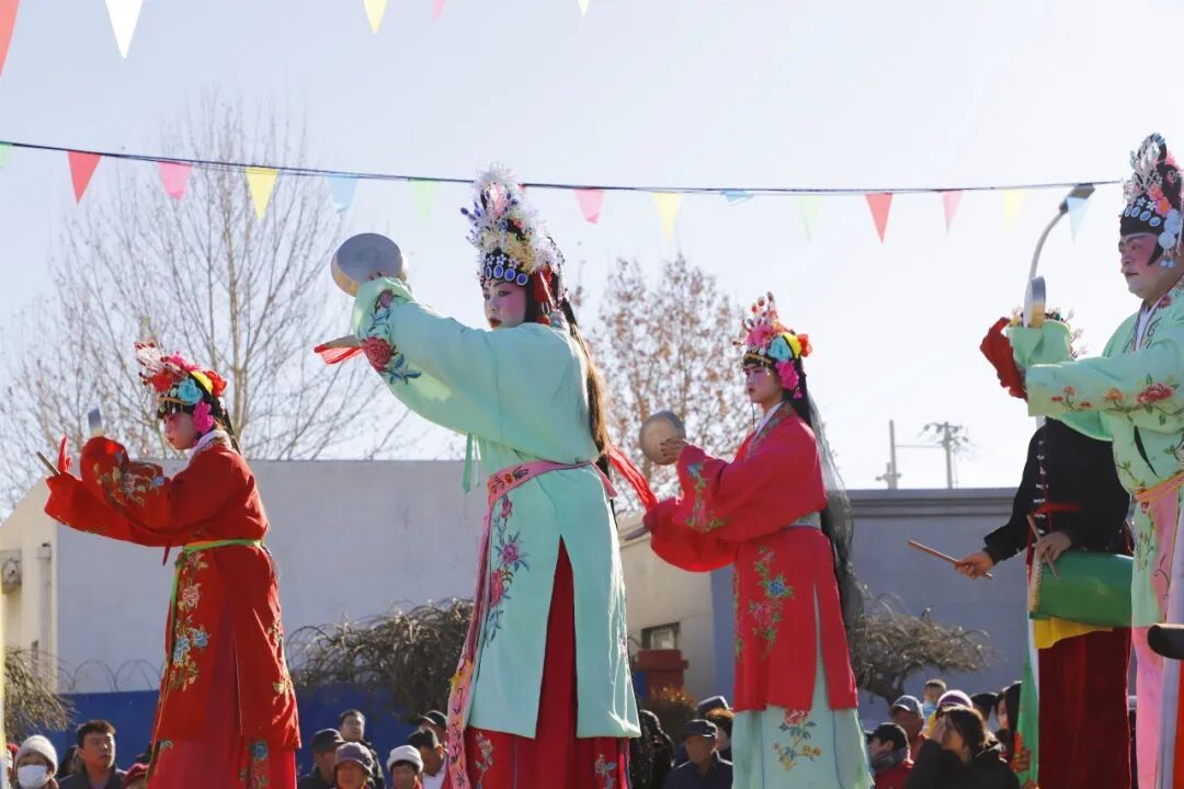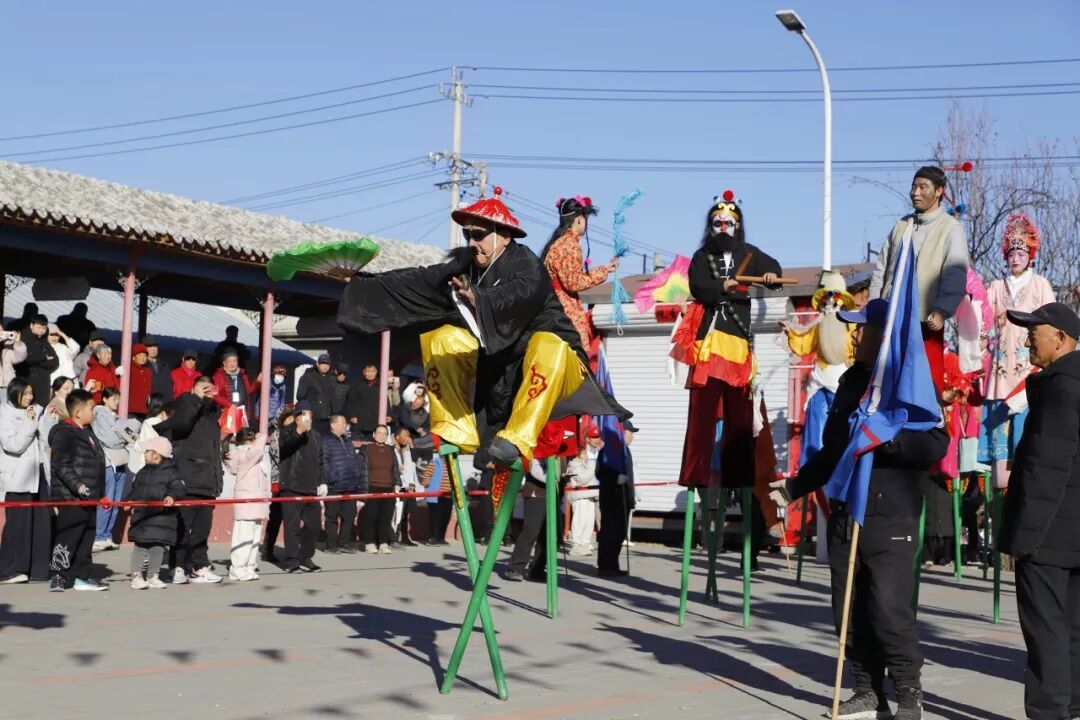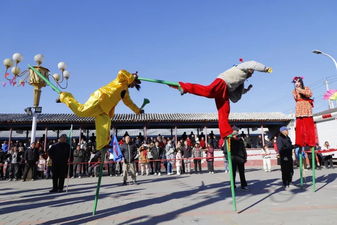 9时,北小营镇大胡营村广场上热闹非凡。一场精彩绝伦的大胡营高跷秧歌演出在这里上演,村民们齐聚一堂,共同沉浸在欢腾热闹的年味儿之中。