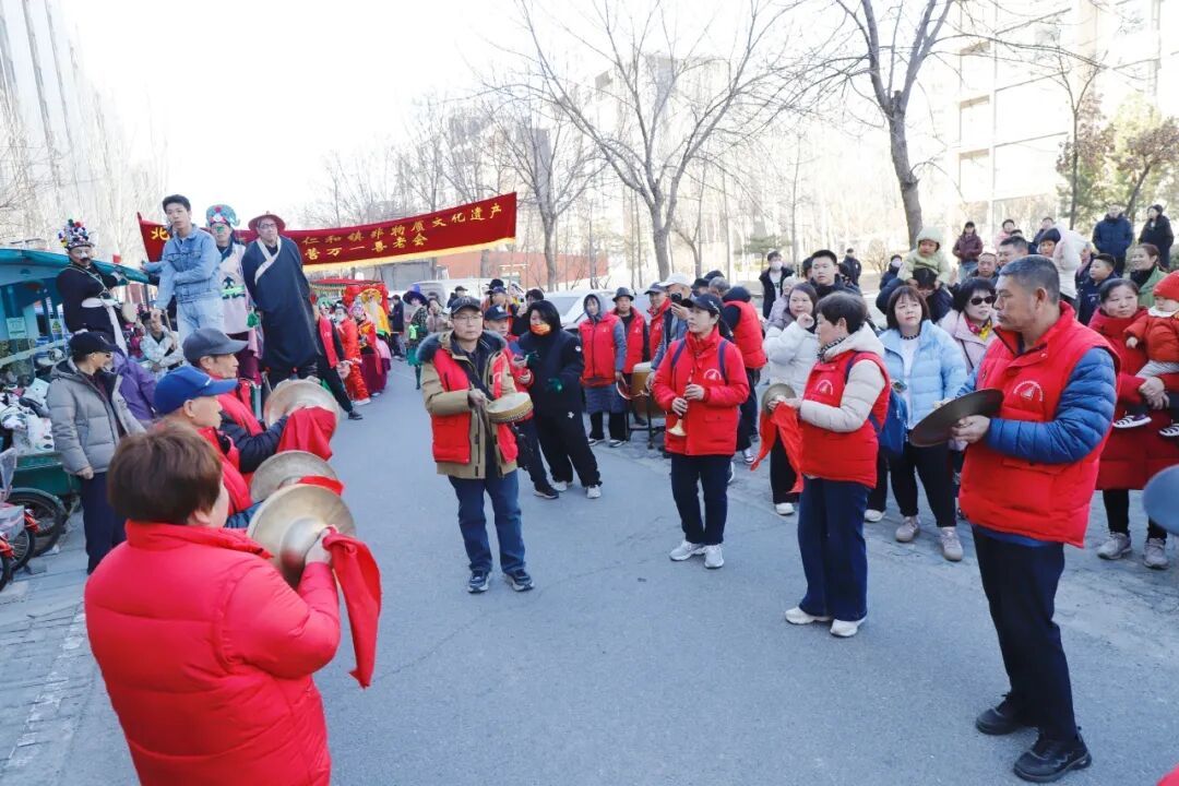 仁和镇万一善老会携手北京顺元祥艺术团踩街表演。