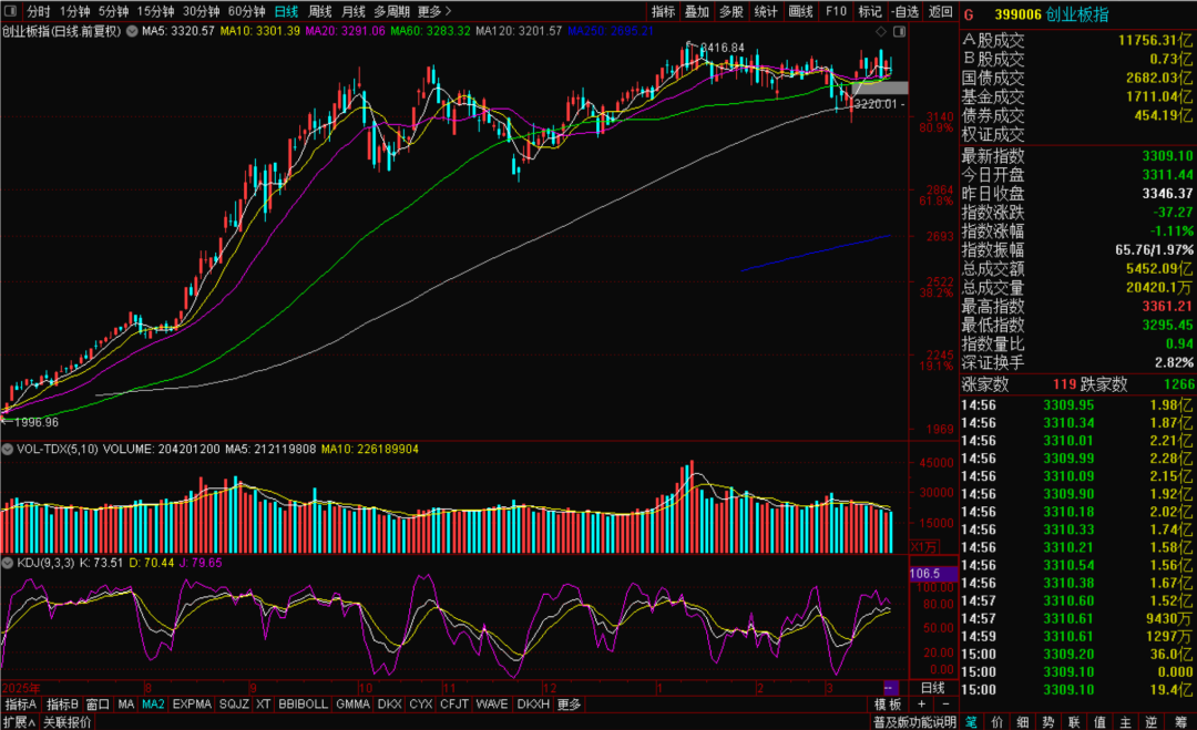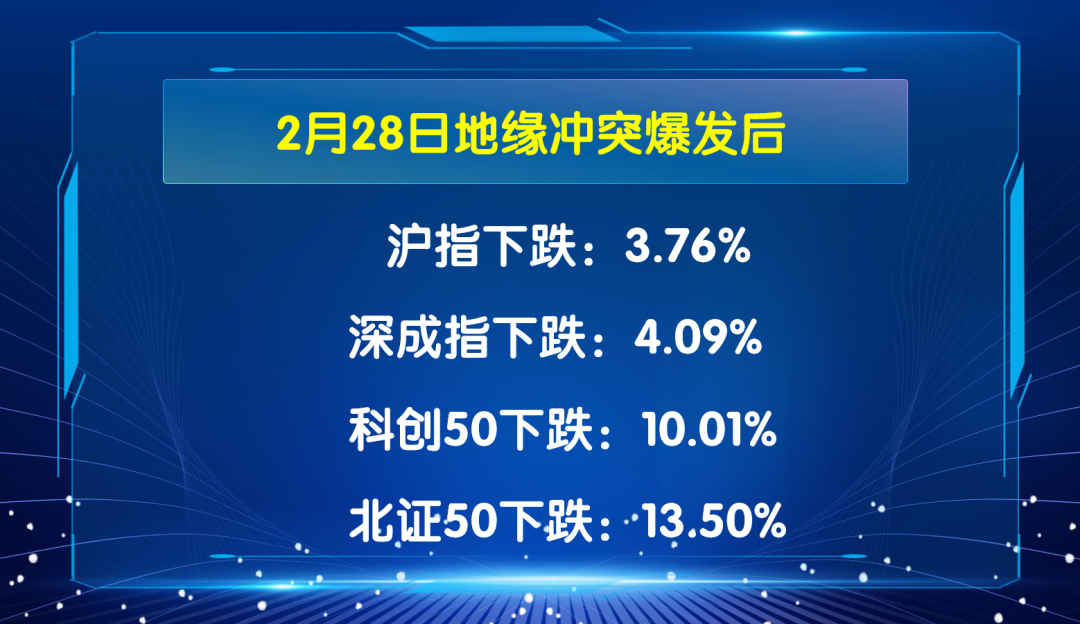从2月28日地缘冲突爆发以来,沪指下跌3.33%、深成指下跌3.21%、科创50下跌9.38%、北证50下跌12.49%。