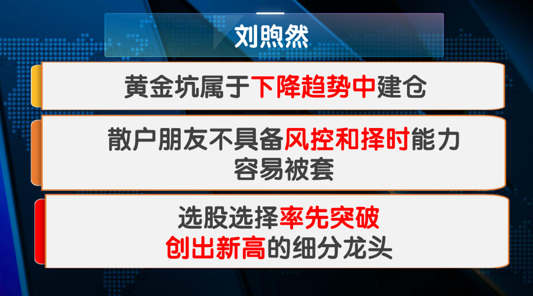 刘煦然建议,选股选择率先突破、创出新高的细分龙头: