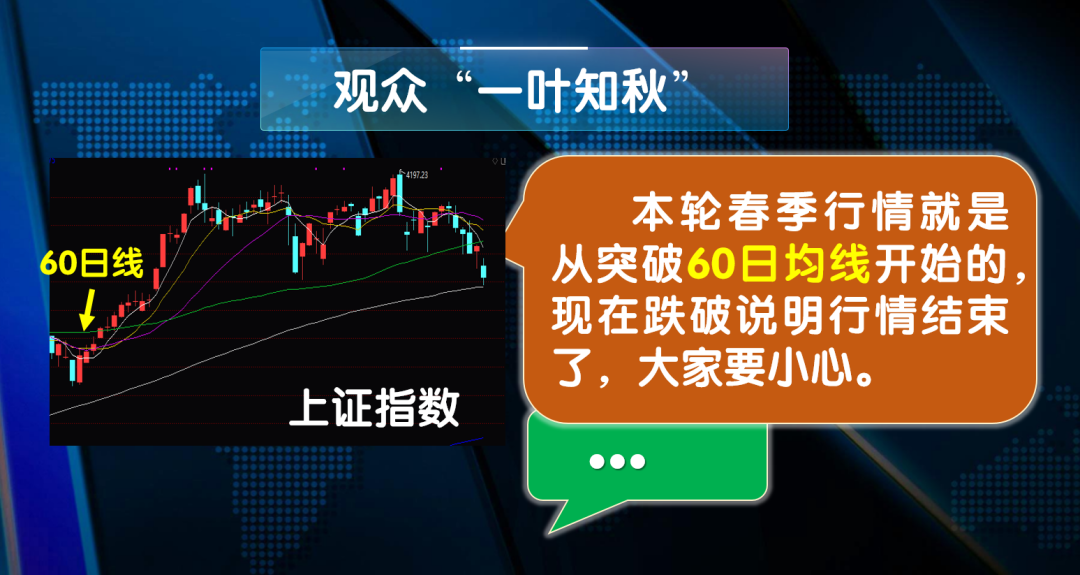 粉丝“一叶知秋”说:本轮春季行情就是从突破60日均线开始的,现在跌破说明行情结束了,大家要小心。