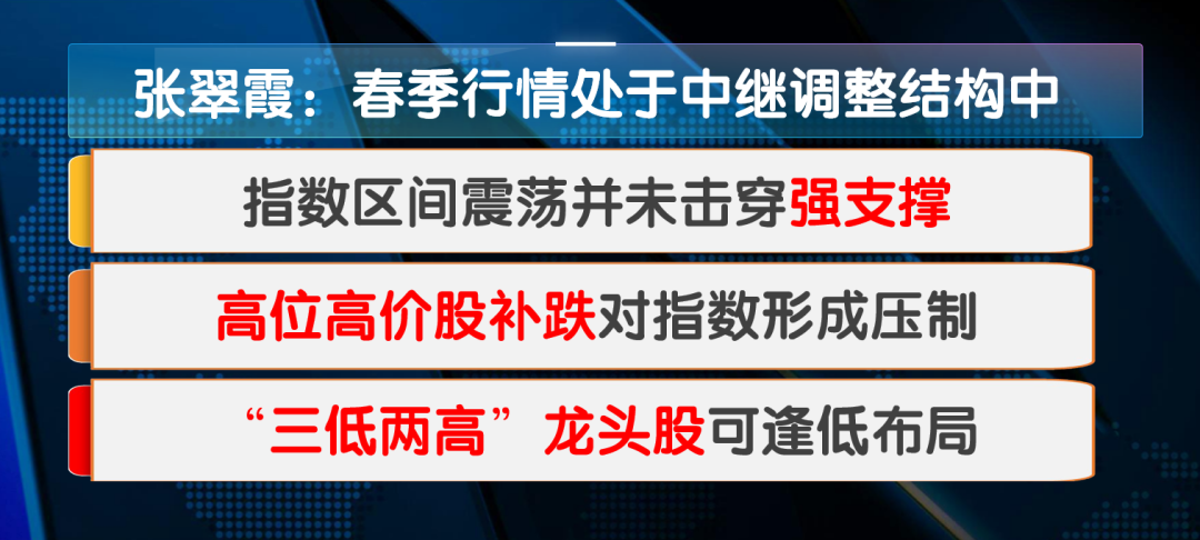 现场嘉宾张翠霞认为,春季行情处于中继调整结构中: