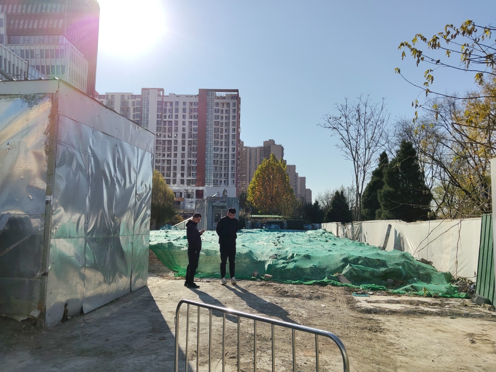 11月19日,“问北京”记者跟随钱女士来到锦荟港,只见西侧原游泳馆、更衣室已完成拆除,现场被防尘网覆盖,有街道办执法人员在现场驻守看护。