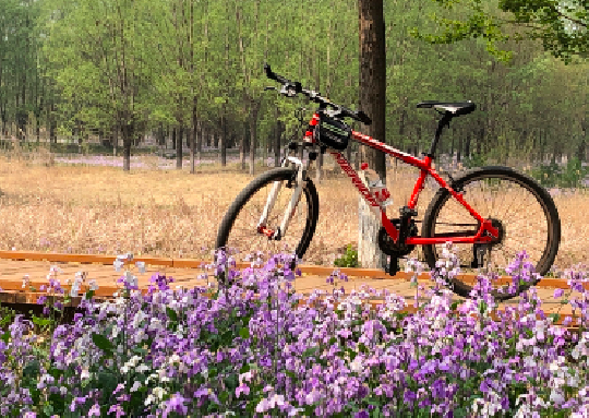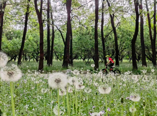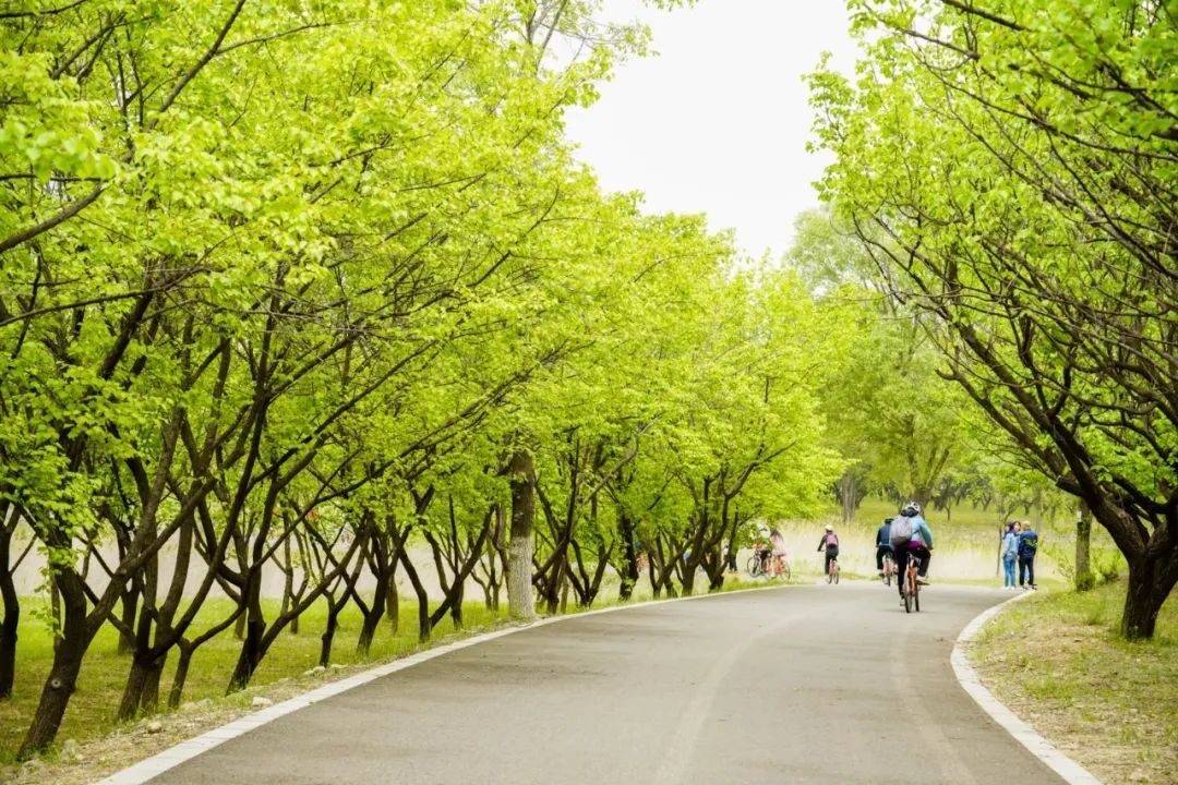 这条线路串联起延庆两大生态地标——世园公园和阪泉体育公园,全程以平坦的专用自行车道为主,适合新手和亲子家庭。骑行于妫河畔,碧水蜿蜒如带,两岸垂柳依依,樱花、杏花点缀其间,宛若穿行于油画中。阪泉体育公园内设有专业骑行道,绿草如茵,远眺海陀山雪顶与蓝天相映,春日气息扑面而来。