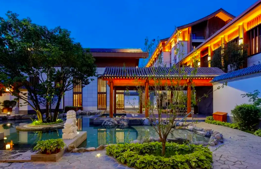 世园悦沁酒店:毗邻世园公园,日式庭院风格,泡汤解乏后,还能在星空下小酌一杯。