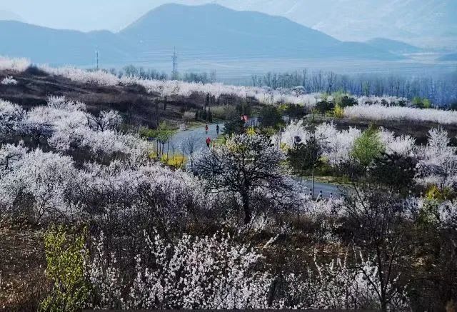 这条线路以“杏花”为主题,4月中旬正值延庆杏花盛放期。从龙庆峡出发,沿山路骑行,两侧山崖峭立,峡谷中溪水潺潺。云瀑沟内怪石嶙峋,春水奔流如练。终点新庄堡村万亩杏林如雪,骑行穿行花海,风过时花瓣纷飞,仿佛置身“杏花微雨”的诗意画卷。