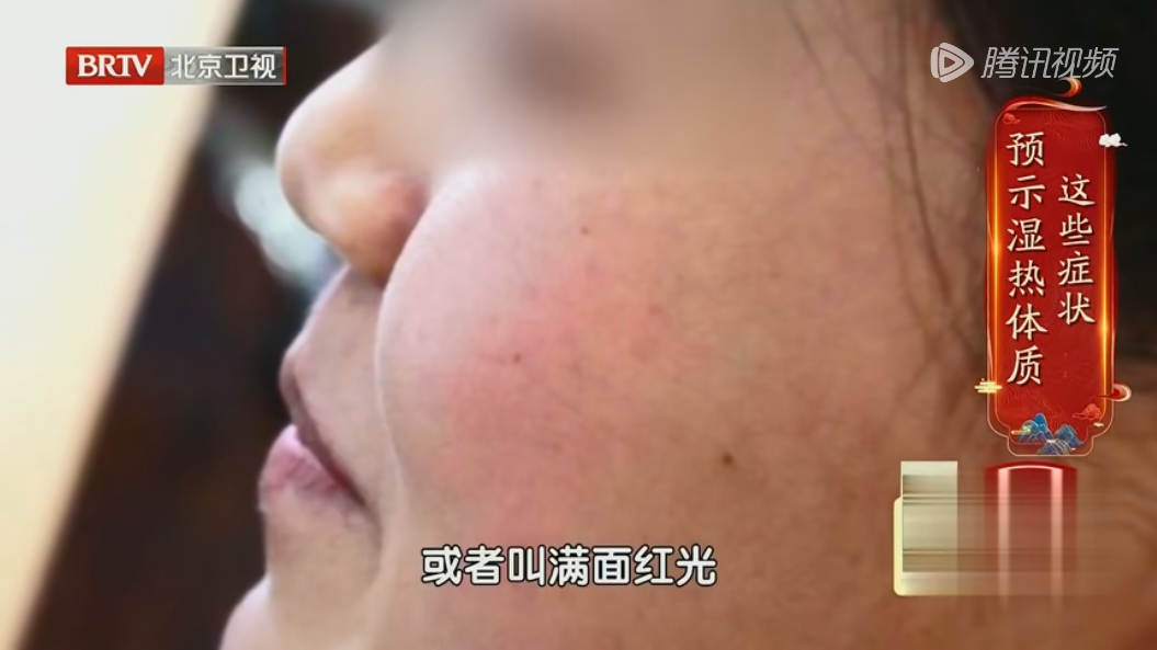 ①红光满面,脸颊潮红,易长痤疮。皮肤油腻。