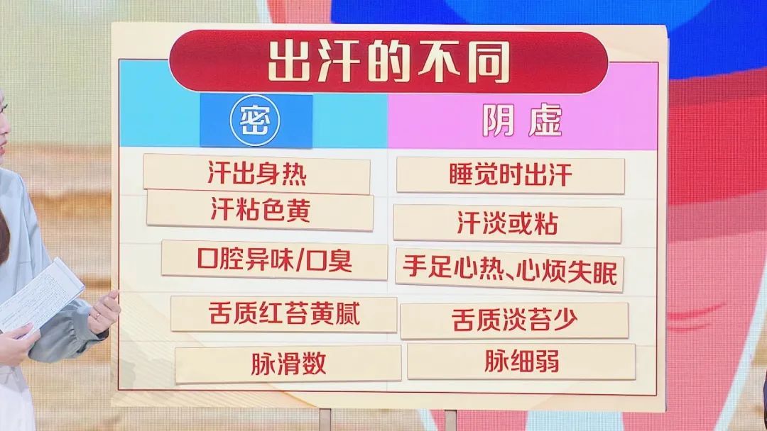 ①阴虚出汗为睡觉时出汗,汗淡或粘。