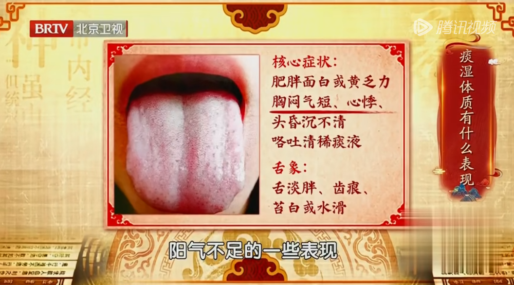 ①肥胖、面白或黄、乏力,胸闷气短、心悸、头昏沉不清,咯吐清稀痰液。都是阳气不足的表现。