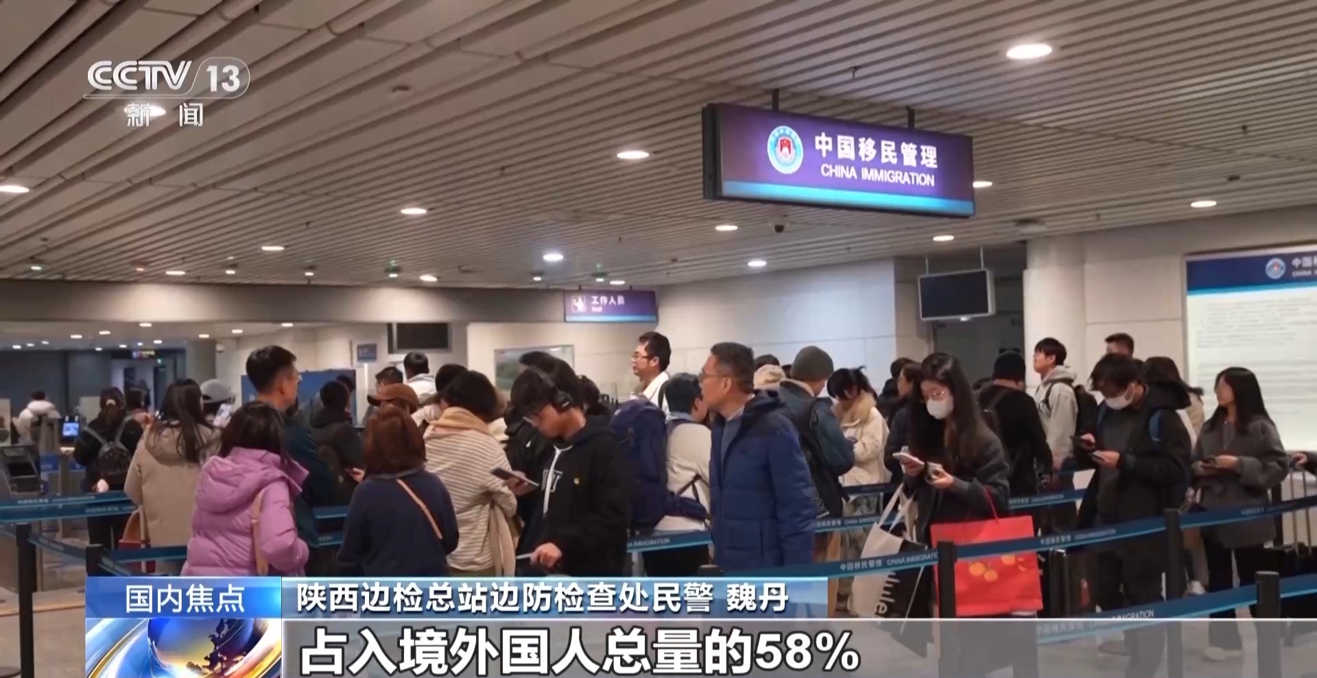 陕西边检总站边防检查处民警 魏丹:春运开启至今,从西安机场口岸入境外国人已超过3100人次,较去年春运同期增长187%,其中免签入境1800余人次,占入境外国人总量的58%。