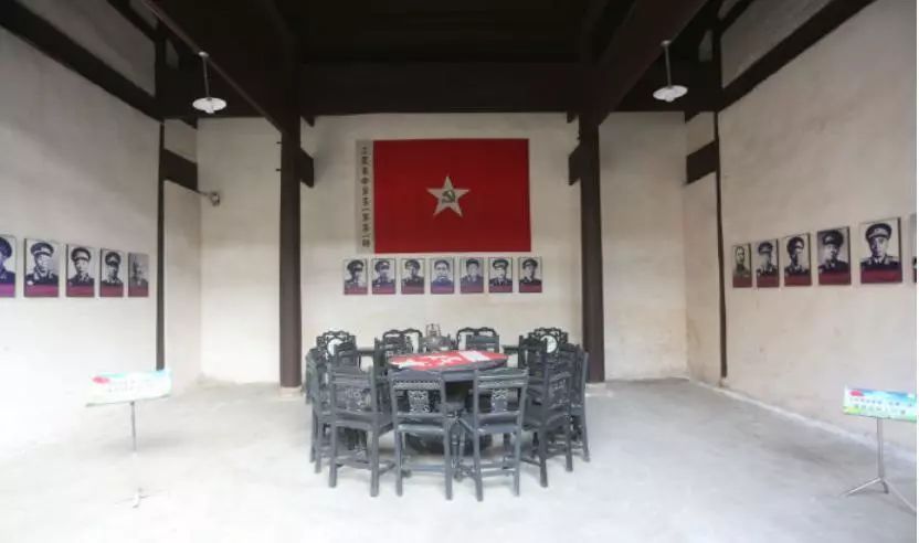 87岁的郭力君老人回忆,“我公公带着年幼的儿子刚回到家,便发现了画在墙上的红军‘军旗’。”这幅军旗画画幅约1.2平方米,黑色笔迹,简笔画成,上面题写“工农革命军第一军第一师政治部”字样。