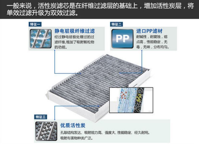 3、保证驾乘室空气清洁而不滋生细菌,创造健康环境;能有效分隔空气中灰尘、芯粉、研磨颗粒等固体杂质;能有效拦截花粉,保证司乘人员不会过敏反应而影响行车安全。