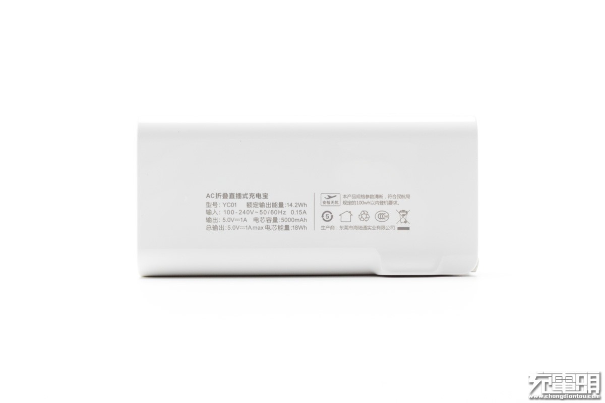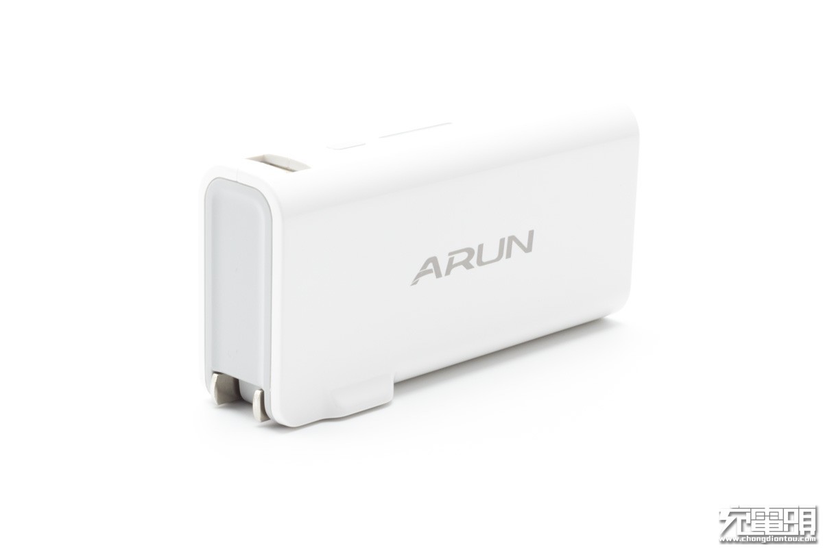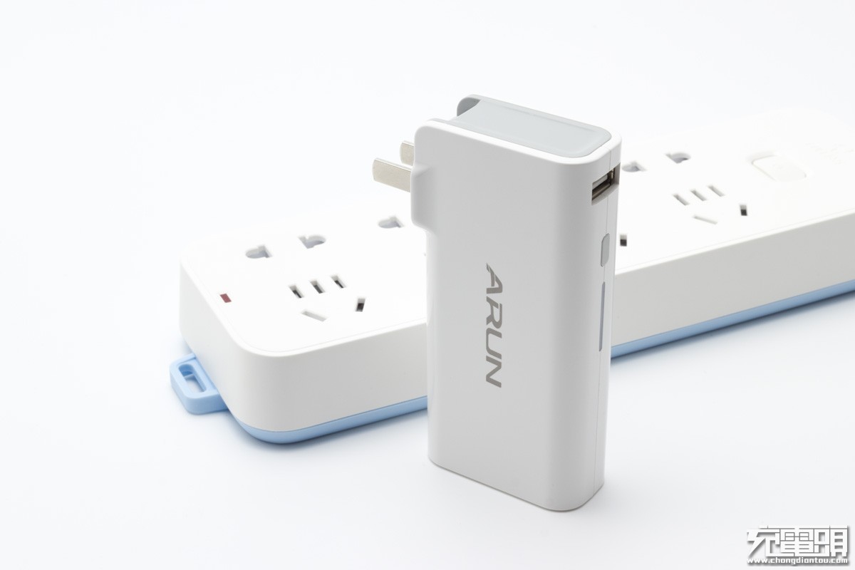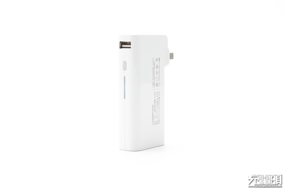 首先,它是充电器。自带可折叠AC直插式插头插上电源,电子设备接入充电器的USB输出接口即可充电。机身带有一个USB输出接口,输出规格为5V1A。输入电压100-240V,适应全球电压标准。
