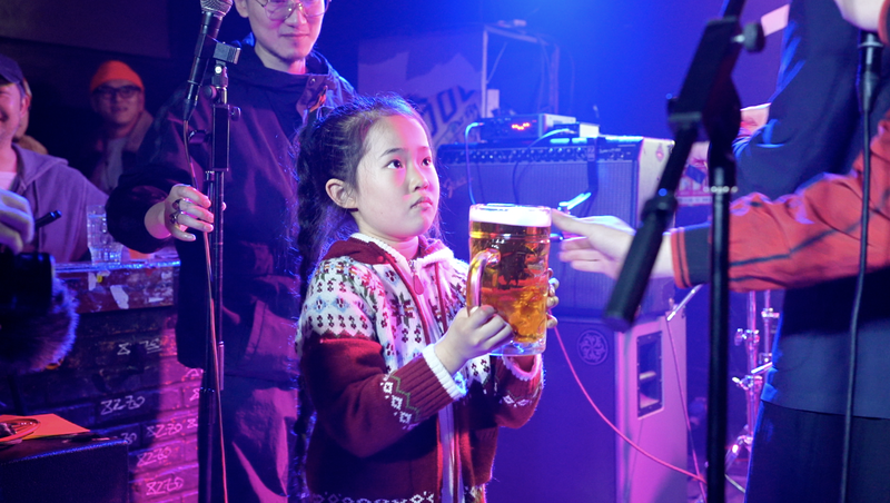 小小的刘姐让2升容量的啤酒杯显得更为硕大,这不是单纯的酒杯,是当晚获奖乐队的奖杯,是荣誉。