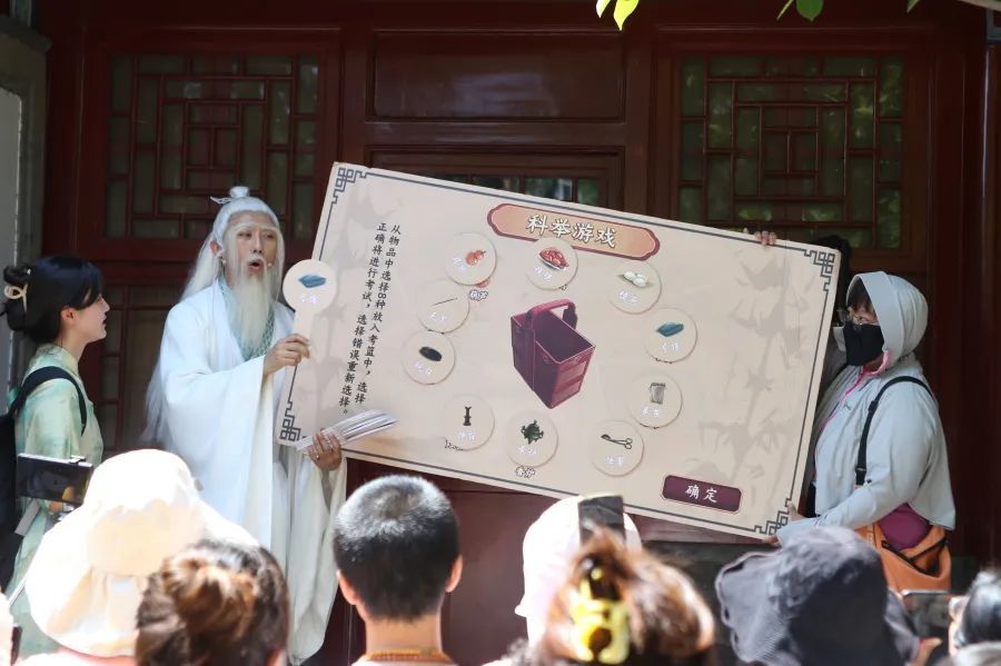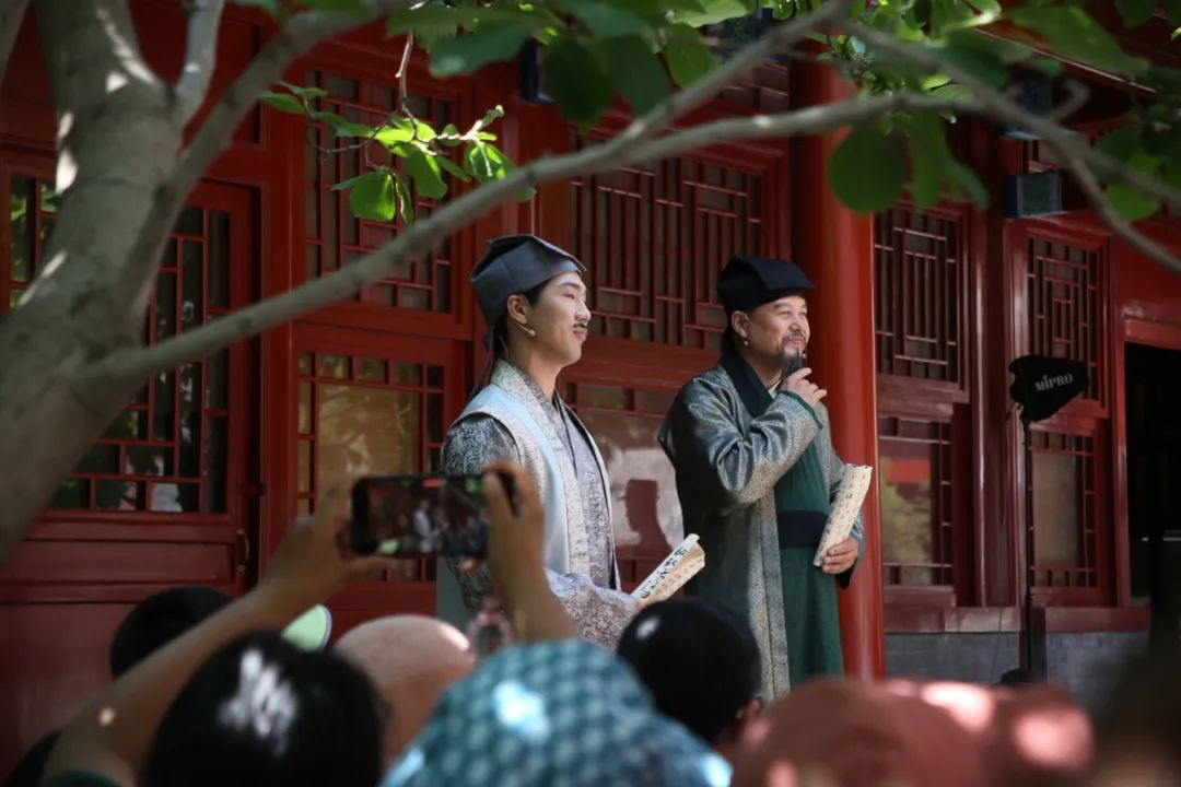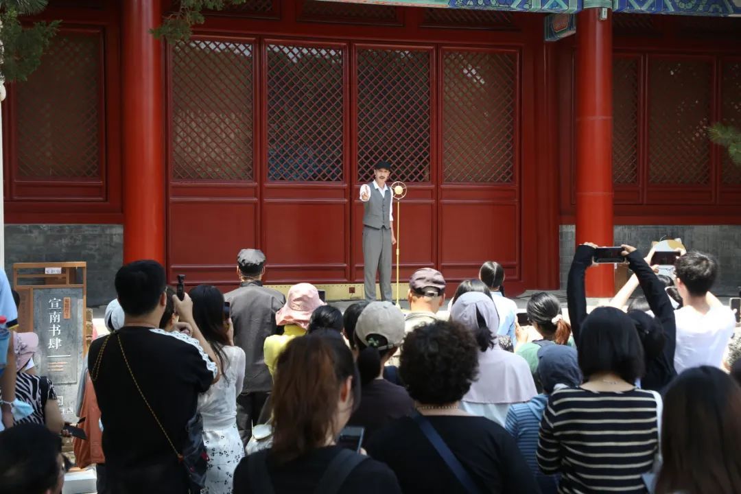 机关干部们还观看了沉浸式导览剧《宣南往士》,跟随清末进京赶考的年轻举人弘生与老神仙石额公的脚步,步入宣南士乡,一同游览孙公园、万卷楼,聆听颜李讲学论道、公祭椒山的故事,感受清代宣南大儒们胸怀天下、勇于担当的精神。