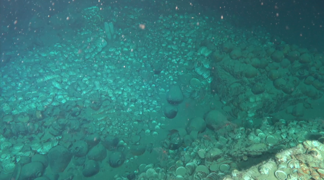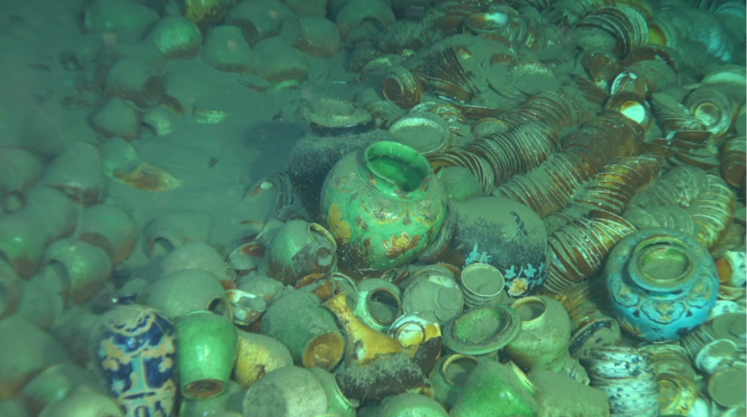 沉船遗址散落的大量瓷器