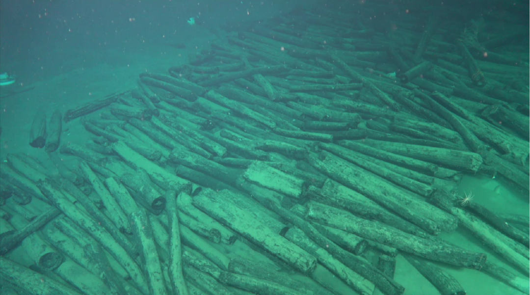 沉船遗址上的大量原木