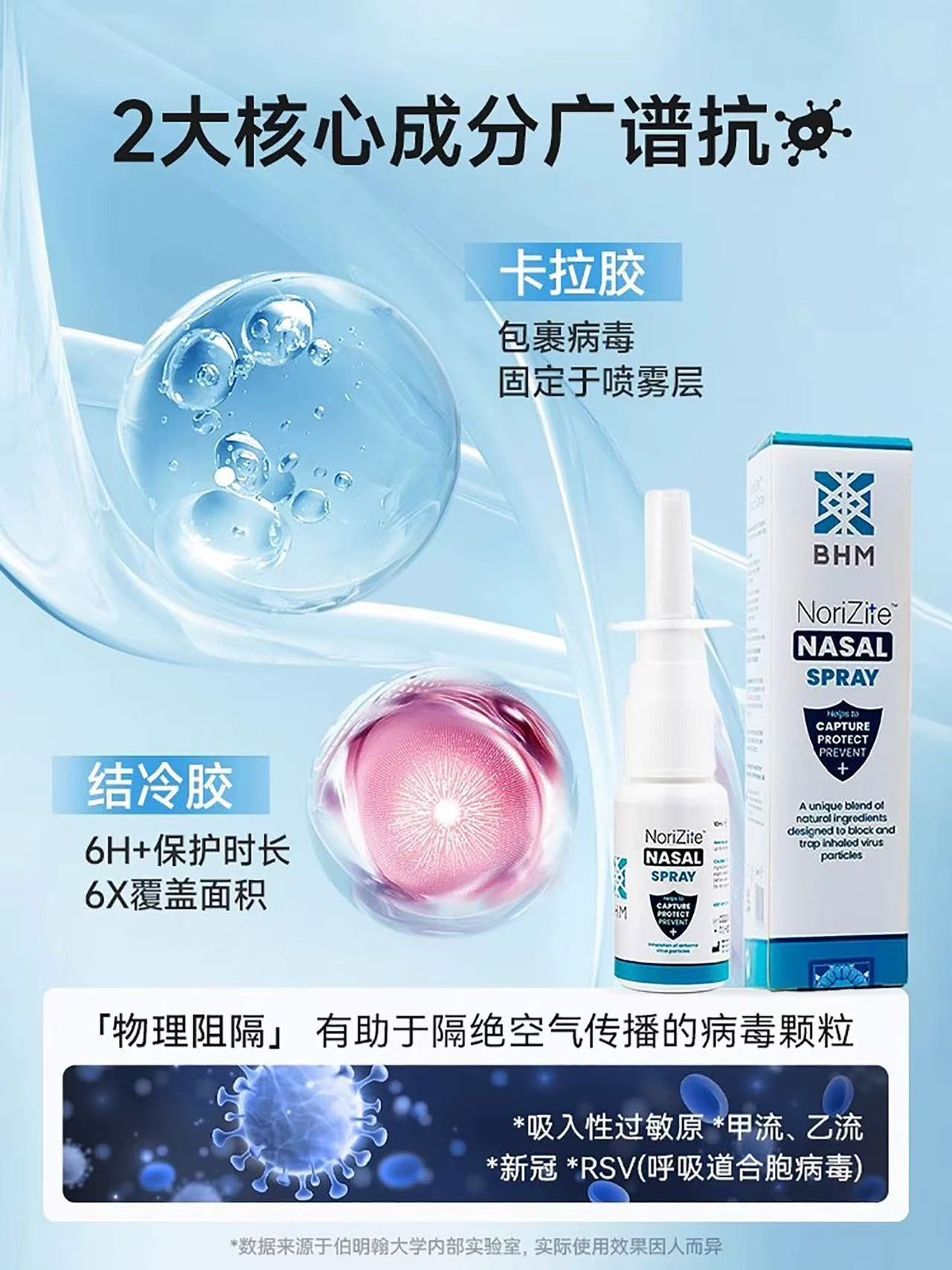 记者联系客服了解详情,其称,该“液体口罩”依托英国伯明翰大学医疗技术研发,有独家专利配方,做过流感、感冒、RSV等呼吸道感染病毒临床试验,阻隔率99.9%。且该产品不含激素和药性,安全可靠无依赖、物理阻隔可长期使用。