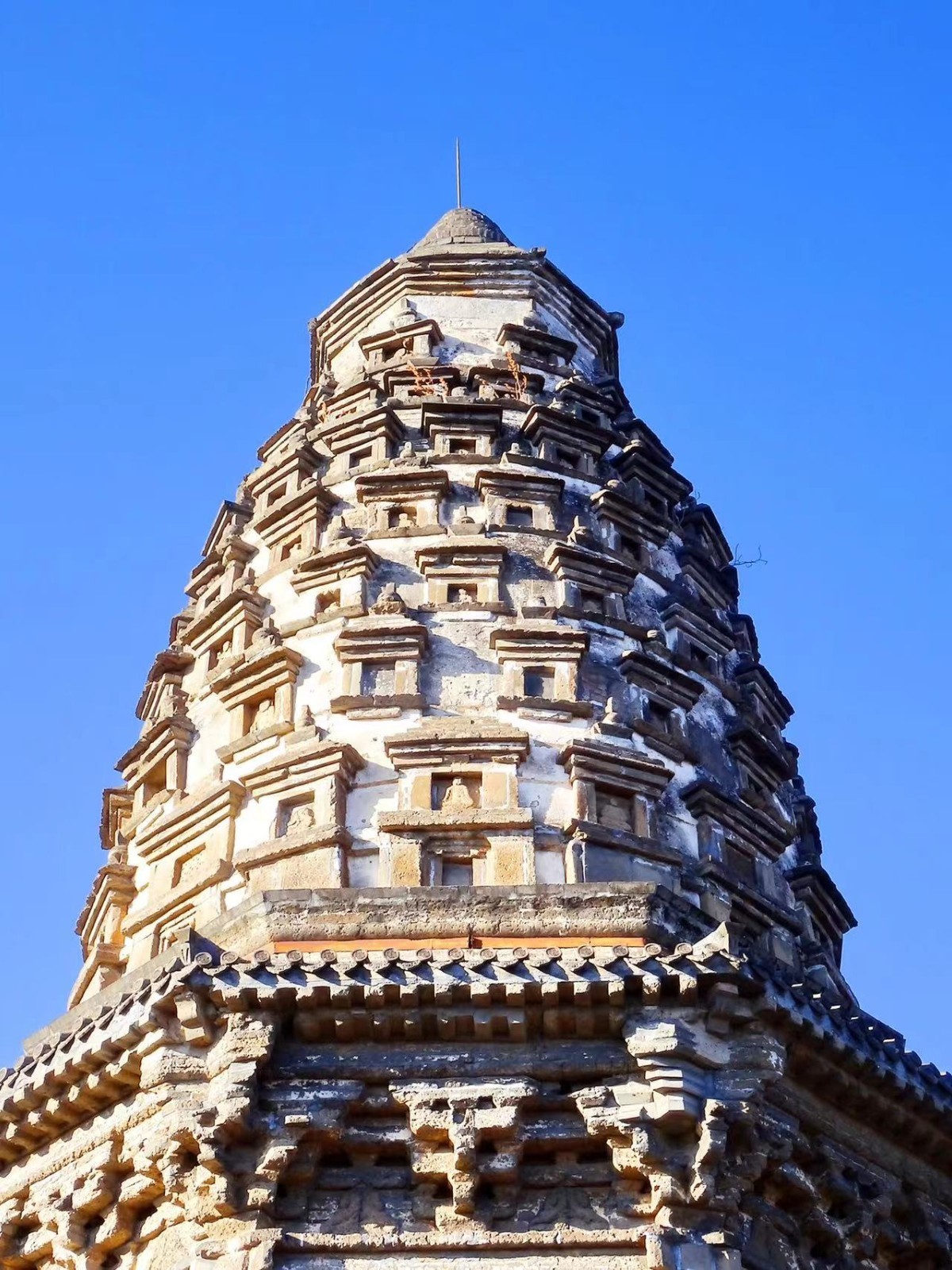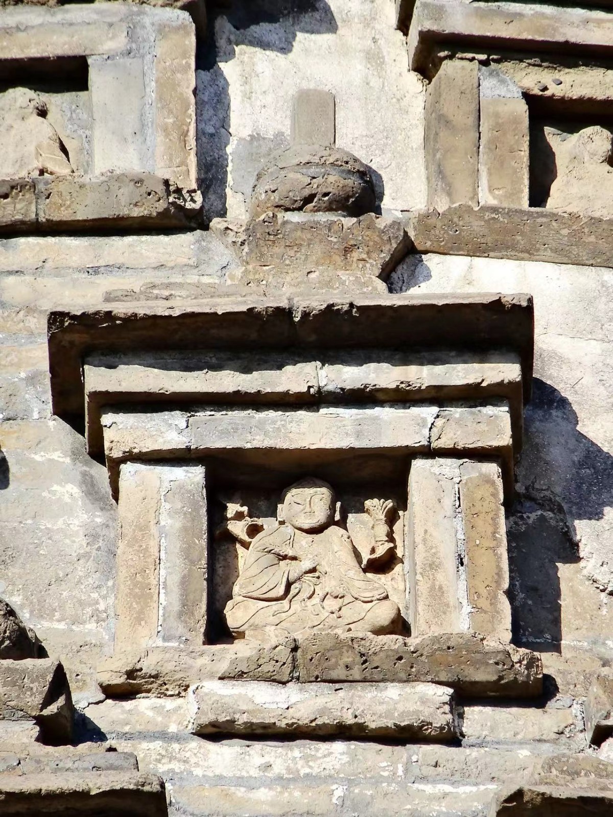 镇岗塔位于北京市丰台区长辛店镇,始建于金代,是一座石砖结构的花塔。塔身的拱眼壁上有盆花、兽头等精美的浮雕。塔身上层部分刻有佛龛,各佛龛内端坐一尊佛像,密布相错,环绕而上。如此精巧的石塔已被我国列入文物保护名单!