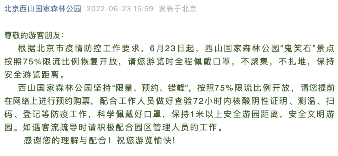 根据疫情防控工作要求和部署,截至6月23日,北京市部分景区、商业综合体、交通运营有所调整,市民出行请注意。