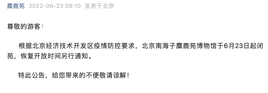 3、北京南海子麋鹿苑博物馆闭馆通知