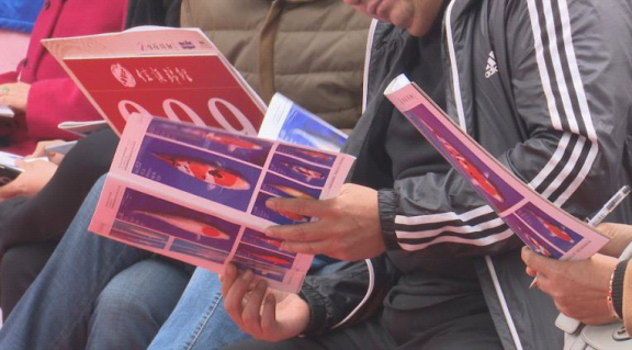 昨天在贾汪区,来自山东临沂、辽宁大连、山东青岛、安徽蚌埠、河南商丘、香港、广州等地的锦鲤爱好者们在拍卖会上齐聚一堂。