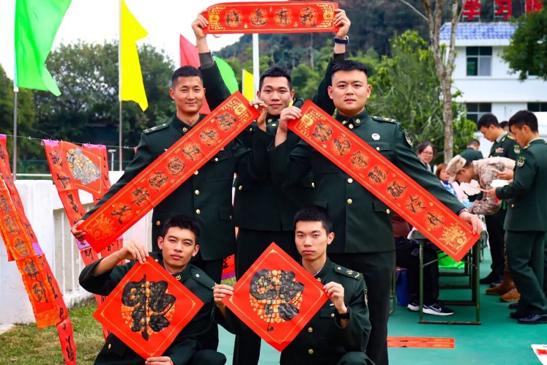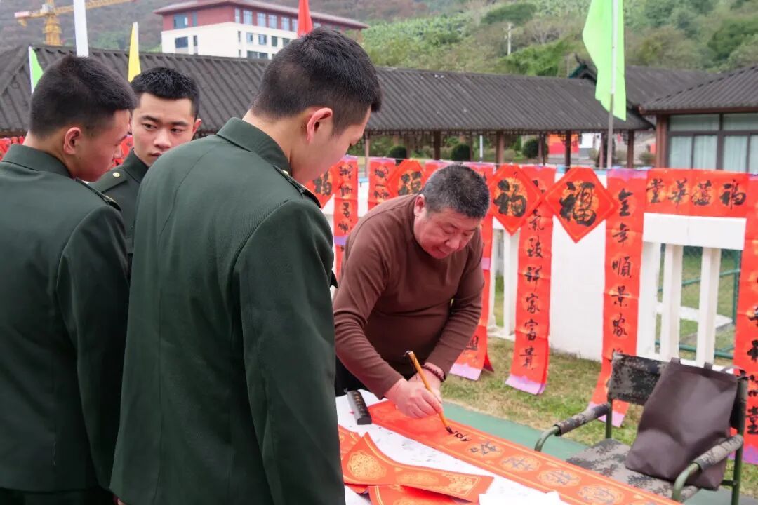 书法家正为官兵们挥毫泼墨