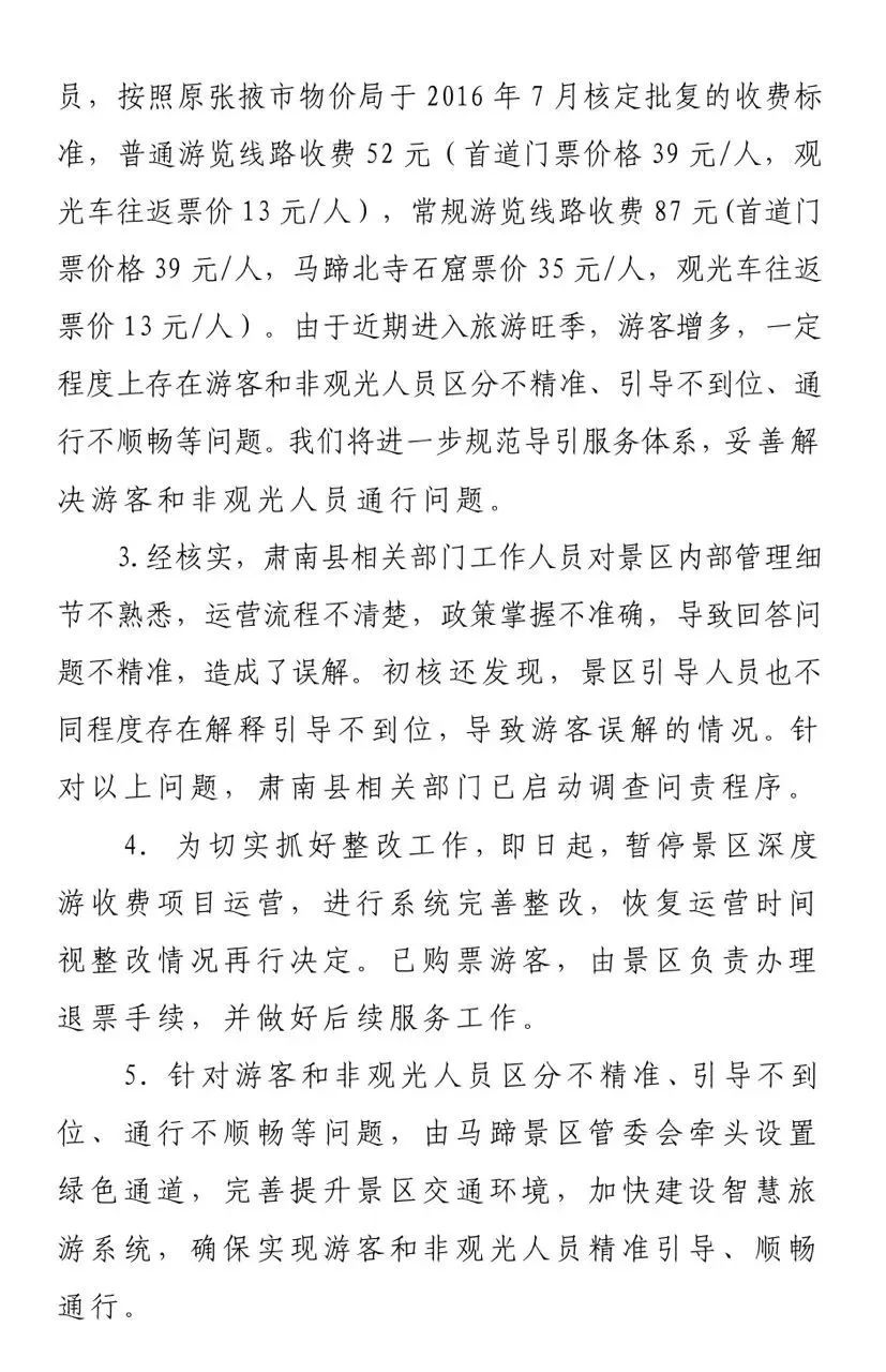 甘肃肃南县文旅局发布关于媒体反映甘肃马蹄寺景区收取“天价过路费”情况说明: