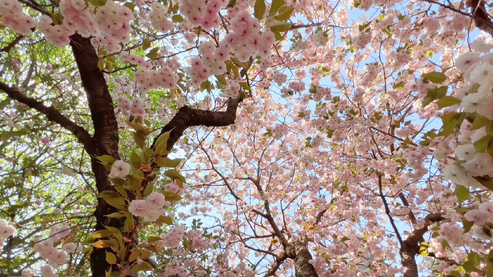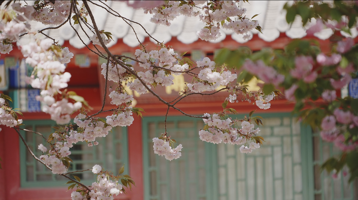 抬头一看,透过粉嫩的樱花看向身后的古风建筑,仿佛给这些建筑添加了一层粉嫩的滤镜,特别有春天的感觉。
