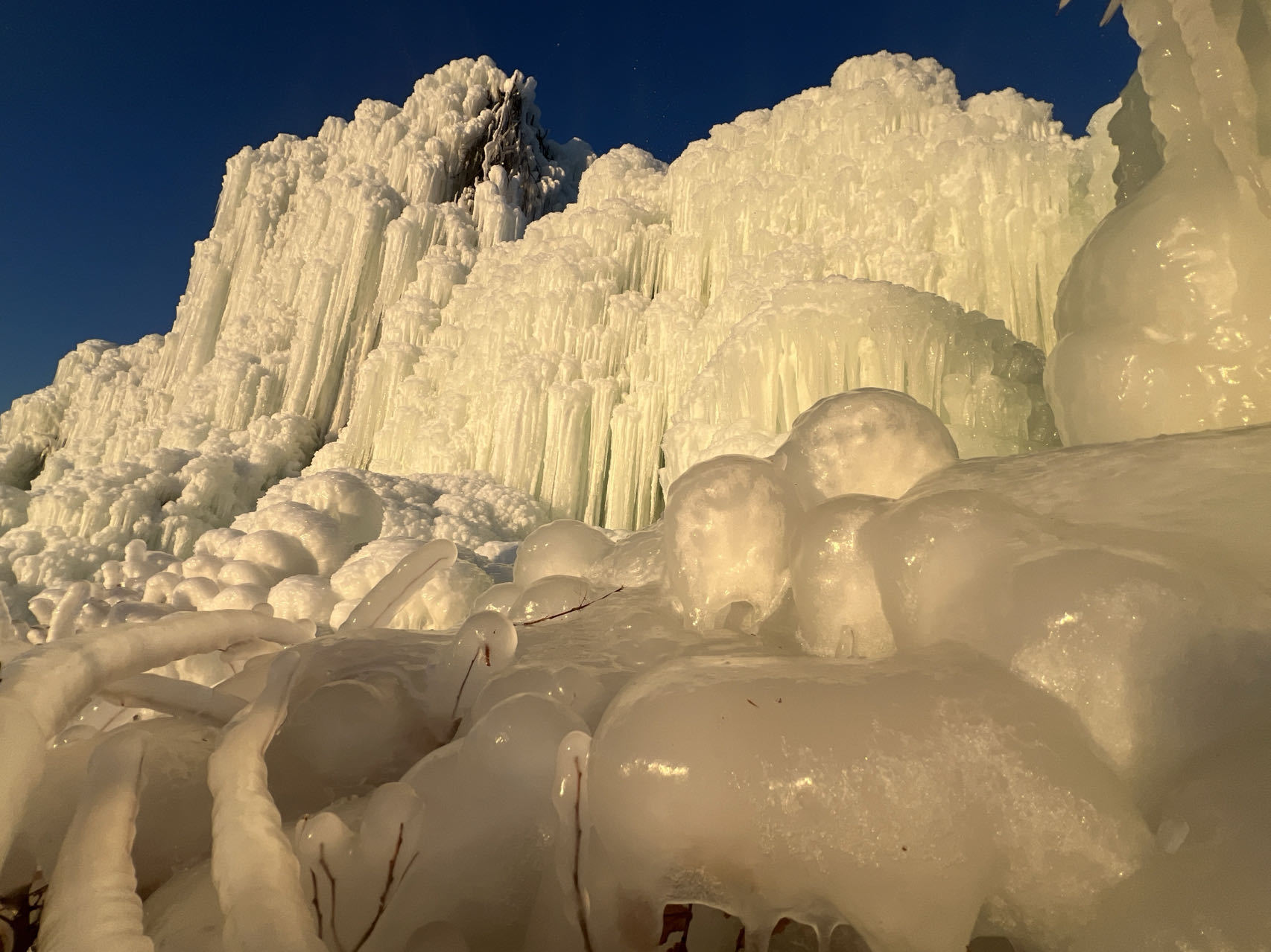 据了解,整个的冰雪伊甸园面积为200亩,有70余亩冰雕、400米冰洞,大大小小的景观姿态各异,尽显创意之美;真冰真雪,彰显自然之美;线条构造精巧,展现艺术之美。
