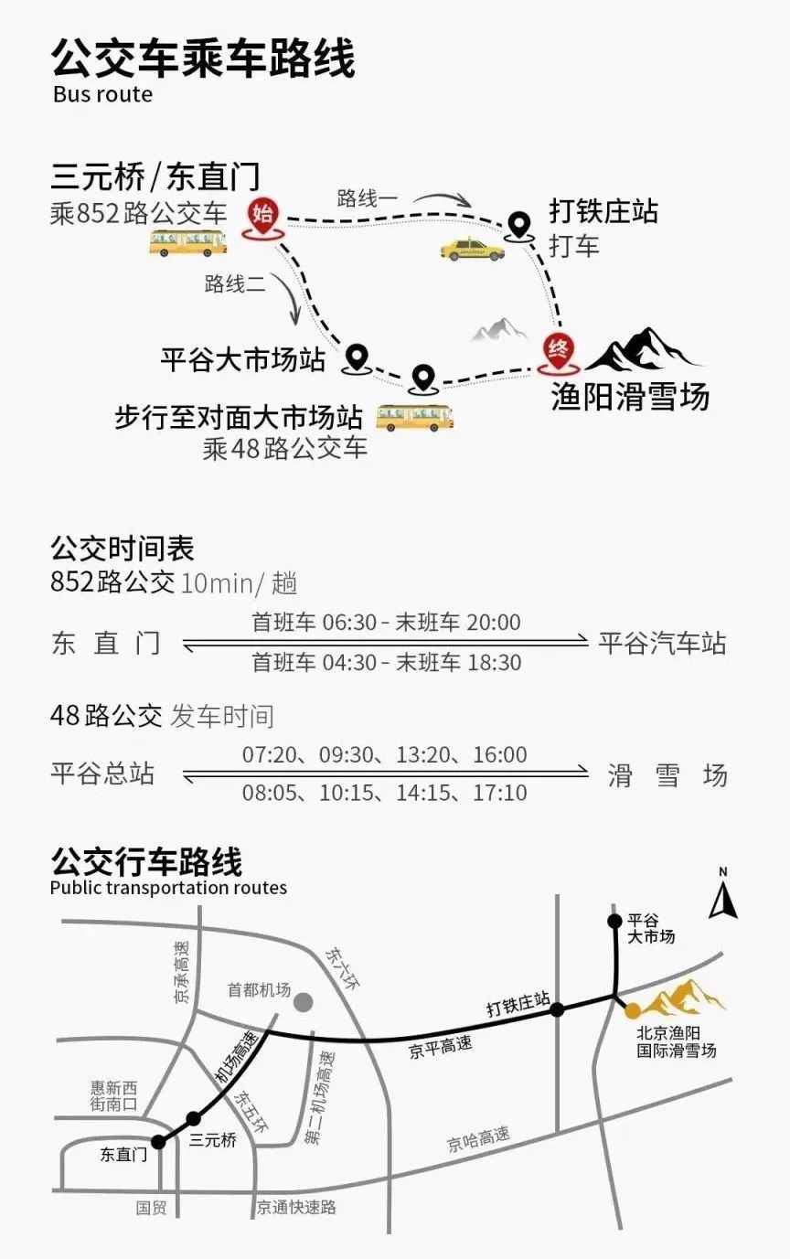 设置国贸地铁站、刘家窑双线路直通雪场巴士专线,让滑雪出行有更多选择