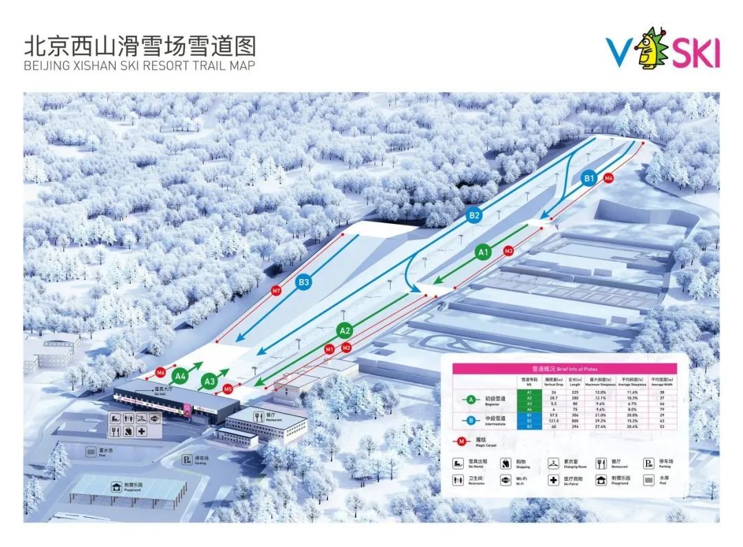 雪道:西山滑雪场是距离北京市区最近的高标准滑雪场,设有入门雪道、初级道、中级道、高级道共7条雪道,可以为不同水平的雪友提供全方位的滑雪体验。季卡存板间空间优化,新增单板架;提供大号寄存柜包季超划算租赁优惠;增设两台免费吹雪设备供雪友们使用。