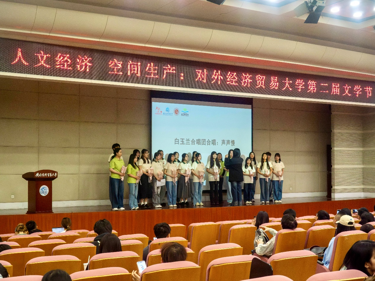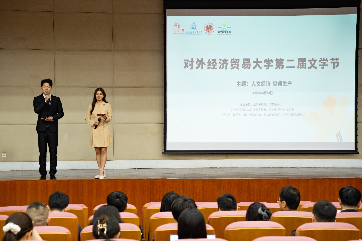 (记者 崔倩)4月23日,对外经济贸易大学第二届文学节开幕式在宁远楼三层国际报告厅举行。,以“人文经济 空间生产”为主题,汇聚校内外专家学者、文化嘉宾、优秀校友及师生代表200多人,共话文学与城市、文学与记忆、文学与青春的时代话题。