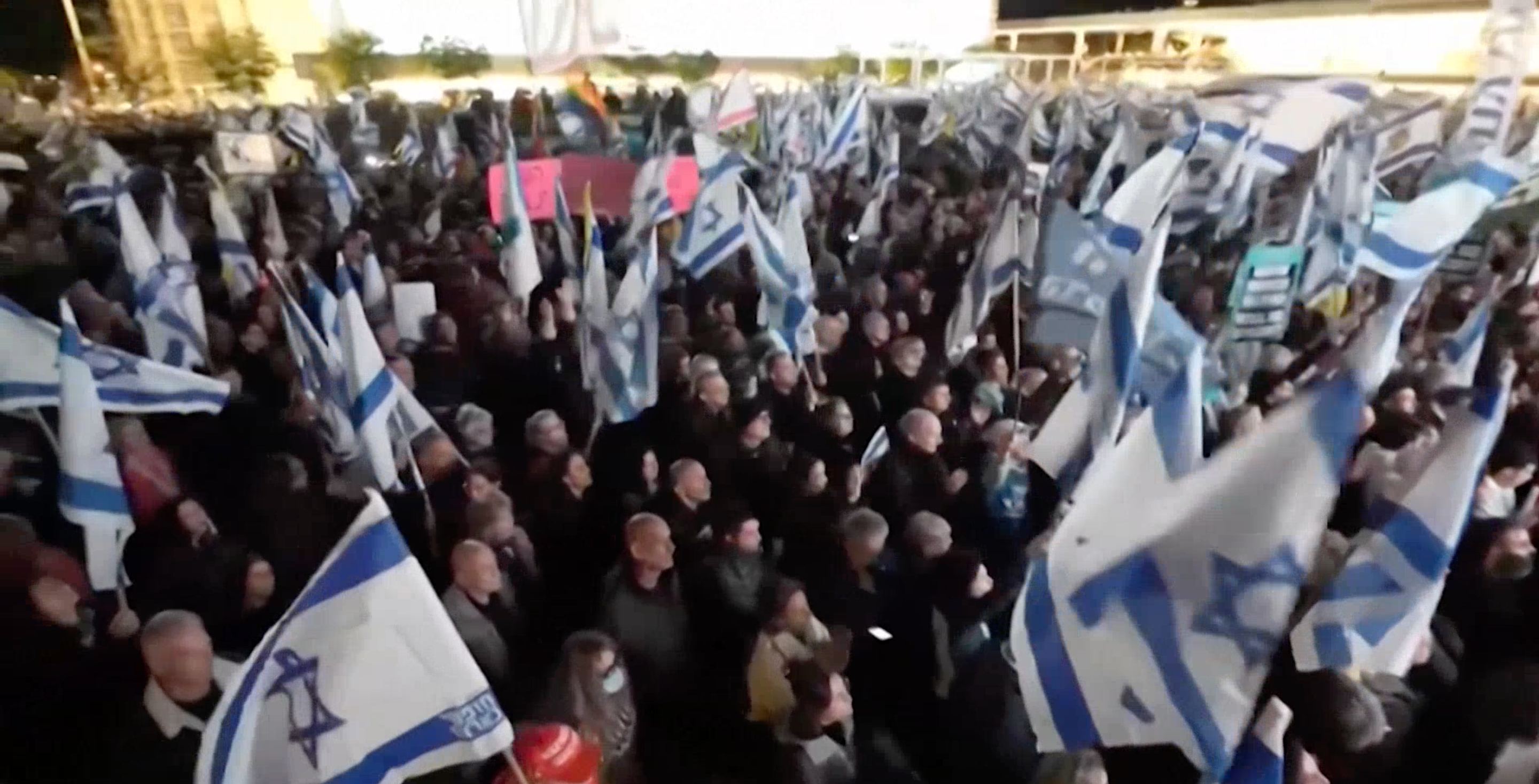 当天,以色列特拉维夫爆发反政府抗议示威。以色列反对派领导人拉皮德在特拉维夫市中心的集会上对数千名示威者表示,如果政府不服从高等法院的临时禁令,就会成为一个不遵守法律的政府。