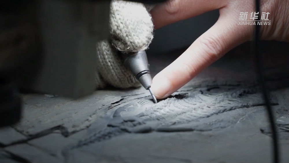 遇到难修的化石,在一天8个小时的工作时间里,他们只能修复1厘米左右的岩面。