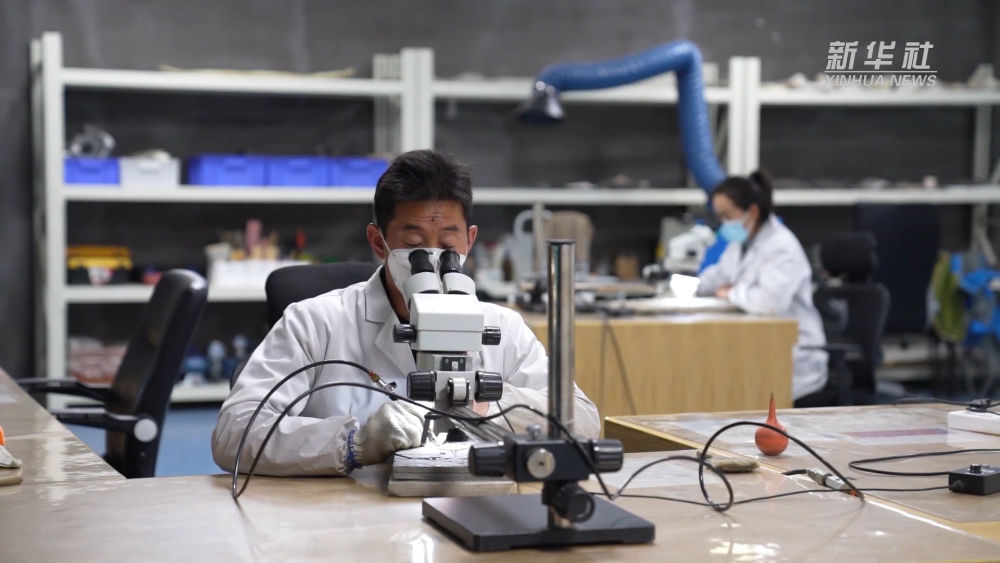 王云中是兴义国家地质公园博物馆的化石修复师,从业10年来,他和同事一起完成了400余件古生物化石的修复工作。