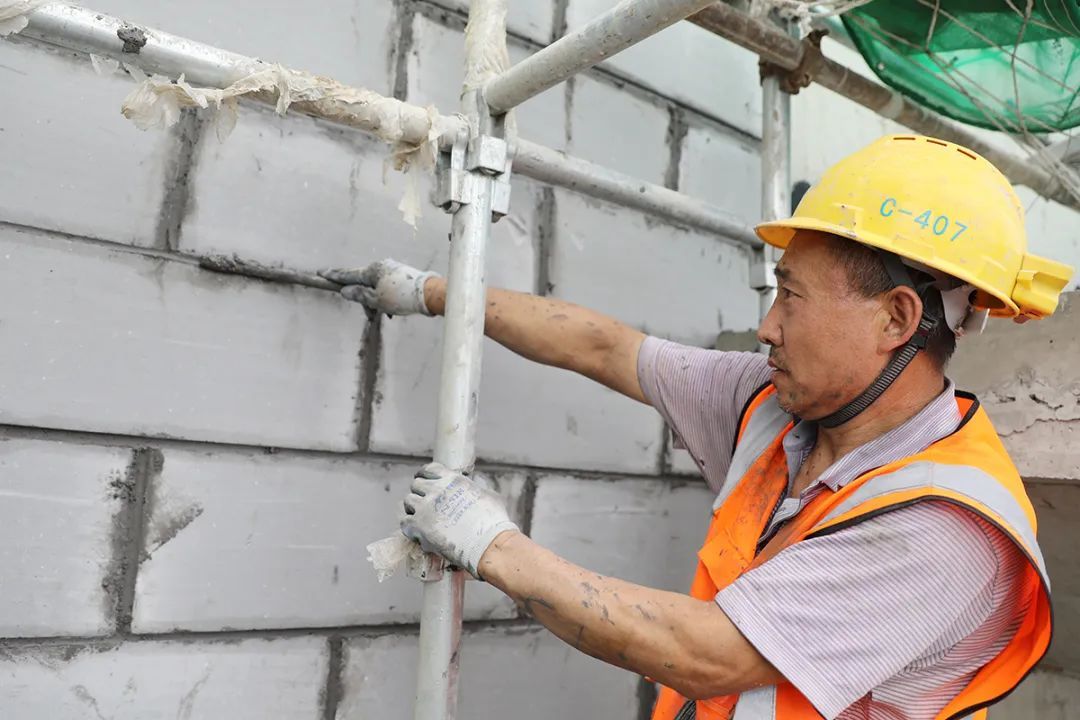 走进杨镇棚改项目安置房工程施工现场,70余台塔吊林立、长臂挥舞,机械轰鸣,5000余名工人穿梭忙碌,一片热火朝天的繁忙景象。室内,测量、二次结构砌筑等工序正有条不紊推进中。