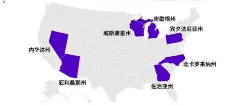 在决定大选胜负的7个关键“摇摆州”,也被称作“战场州”:哈里斯和特朗普的民调支持率极其接近,两人交替领先。