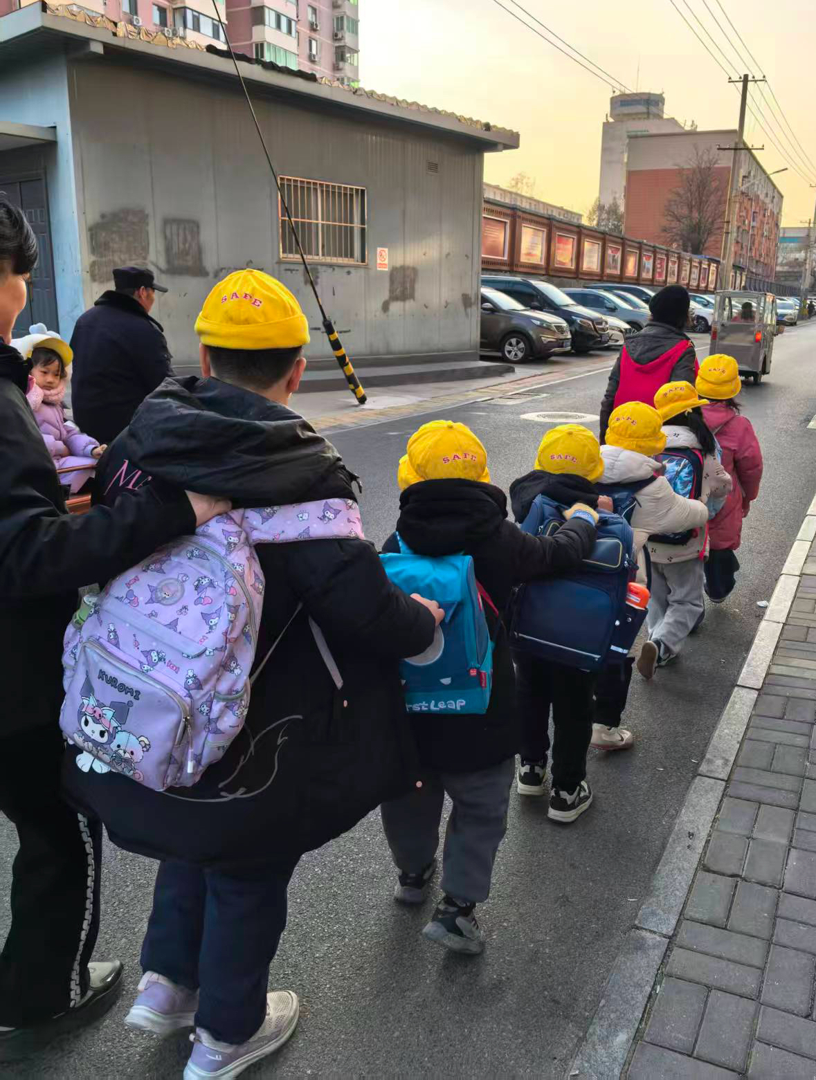 今天和马伶菊“搭班”的是58岁的张联,她是后加入队伍中的。张联退休不久,儿子还没结婚,有精力先做几年“共享奶奶”。待孩子们到齐,两位老人叮嘱他们各自抓住前面同学的书包,一前一后护送着这“串”队伍向活动室前进。“虽然离得不远,一路上车多人多,真得拿出责任心来!”马伶菊感慨,轮到自己“值班”时,神经始终绷得紧紧的。