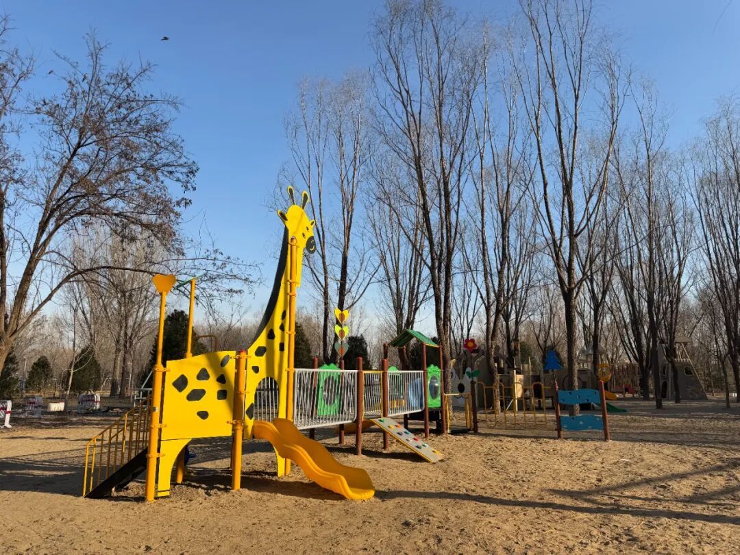 公园内各类设施一应俱全,既有保留完善的原有设施,也有新增的全龄段体育休闲场地。原有设施包括健身广场、健身步道、篮球场和足球场;新增设施涵盖乒乓球场、羽毛球场、儿童活动场地、常规健身器材区、棋苑以及林下拓展训练场地。