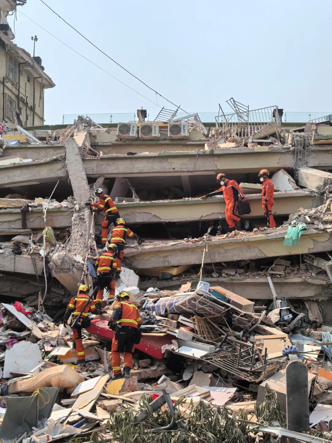 联合搜救!中国救援队与中国香港特区救援队再赴最严重受灾点