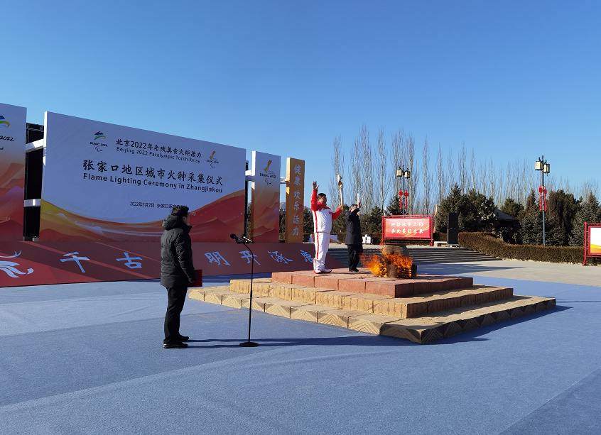 3月2日上午,北京2022年冬残奥会(张家口赛区)火种采集仪式在张家口市桥东“创坝”园区(张家口空港经济开发区)举行。