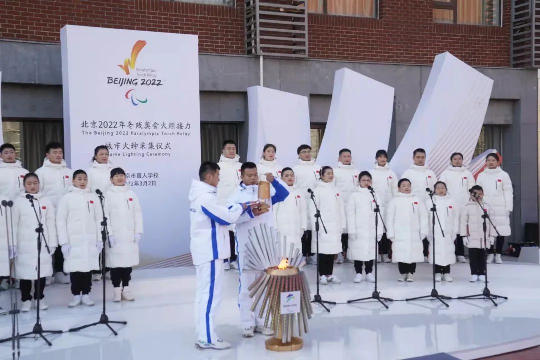 3月2日上午,在北京市盲人学校的操场上,伴随着30名盲校师生动人的歌声,北京2022年冬残奥会城市火种采集仪式正式开始。