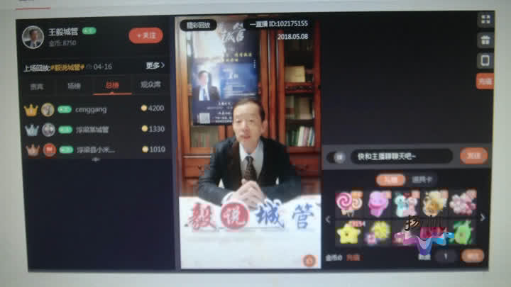在线人数瞬间过万下午三点,在两名学生的协助下,扬州大学法学院教授王毅在一个直播平台,开始了一场关于“城管行政执法体制改革”的网络直播,直播间的名字叫“毅说城管”。