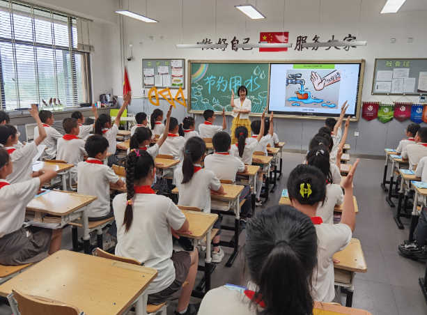 “我校以节约用水作为切入点,定期开展主题班会,并利用国旗下讲话、年级宣传栏等形式,多渠道营造节约用水教育的氛围,同时将节约用水教育融入课堂,使学生了解节水小窍门,培养学生的节水意识,增强环保观念,养成绿色、节约、可持续的生活方式,提升生态文明素养。”教师高莹介绍道。