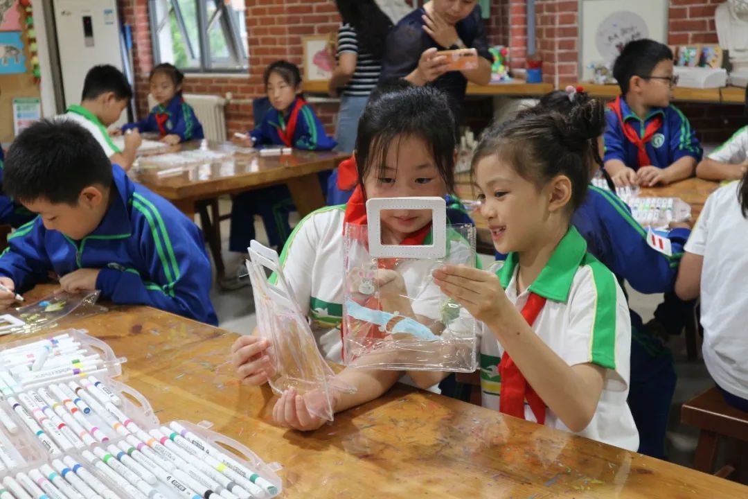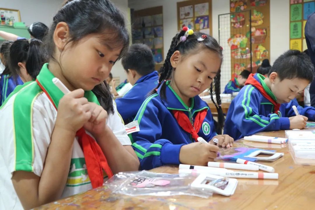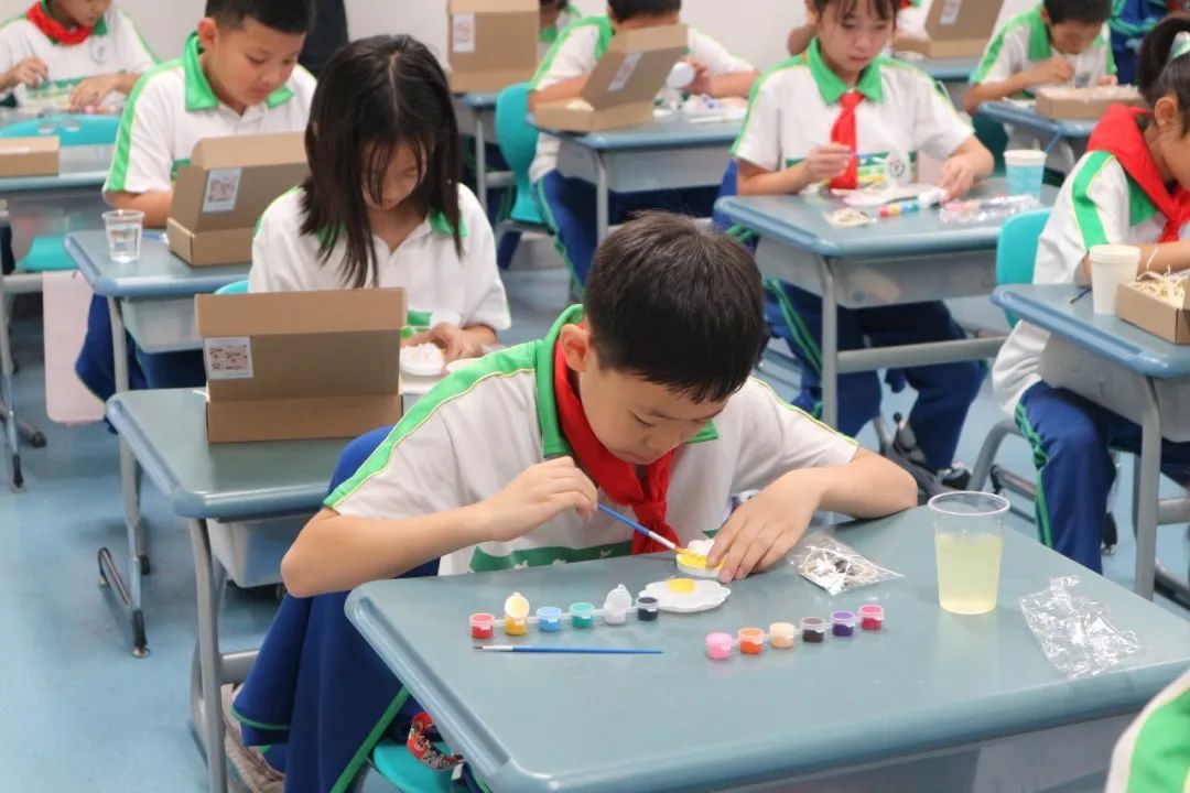艺术节展示了学生们的才华与创造力。不同年级的学生分别尝试制作奶油胶DIY笔筒、进行浮雕色彩绘画及马赛克拼贴体验。